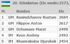 Uzbekistán es el rival para la 7ma ronda y esperemos que Manuel traiga todo su poder si le toca enfrentar al excampeón del FIDE Knockout Championship 2004 Rustam Kasimdzhanov y si en alguna ronda necesitábamos que Juan Carlos despertara es en esta, pues podría estarse enfrentando a Anton Filippov, un GM de 2617 puntos de rating.