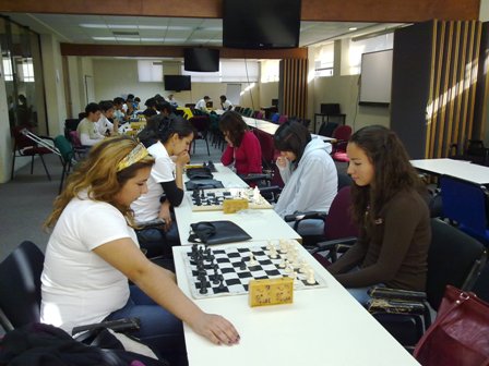 Adriana Salinas (Con las piezas blancas en la foto) es la actual campeona del Interprepas de la UANL y empieza a obtener resultados satisfactorios en los Intras donde compite con las alumnas de las facultades. Si mal no recuerdo obtuvo hace poco el 3er lugar en una competencia de esta índole. Esperemos sus ocupaciones le den tiempo ahora para prepararse a conciencia y hacer un buen papel en el Regional 2010.