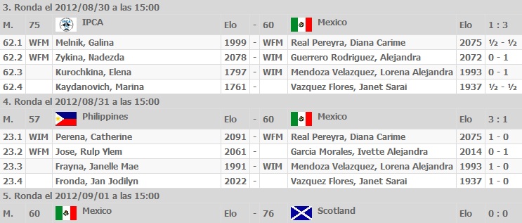 La selección varonil empató en la tercera ronda de la Olimpiada con Juan Carlos sufriendo su segunda derrota consecutiva, algo muy raro en él pero confiamos en que ese caracter granítico le hará volver a la senda del triunfo y contribuir a la buena actuación del equipo. En la 4ta ronda se sufrió una dolorosa victoria por la mínima contra el seleccionado Argentino pero el torneo aún no cruza su ecuador y estamos a muy buen tiempo de tener una actuación sobresaliente.