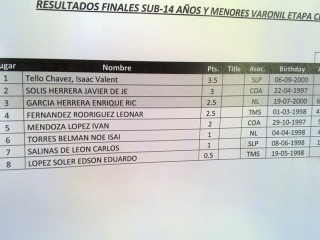 A continuación anexo los resultados completos de la modalidad clásica y unas imágenes de los competidores. Asimismo los medallistas Neoleoneses de la modalidad rápida.