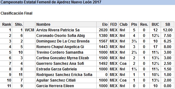 Siendo la primera vez que el Campeonato Estatal Femenil se disputaría en un torneo suizo FIDE, todas las participantes se mostraron emocionadas por ser reconocida como la primer ganadora de este certamen que esperamos sea sólo el inicio de una gran tradición en Nuevo León.