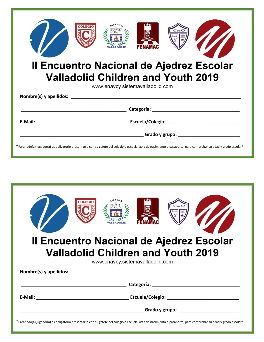Invitación a participar en el II Encuentro Nacional de Ajedrez Escolar Valladolid Children and Youth 2019.