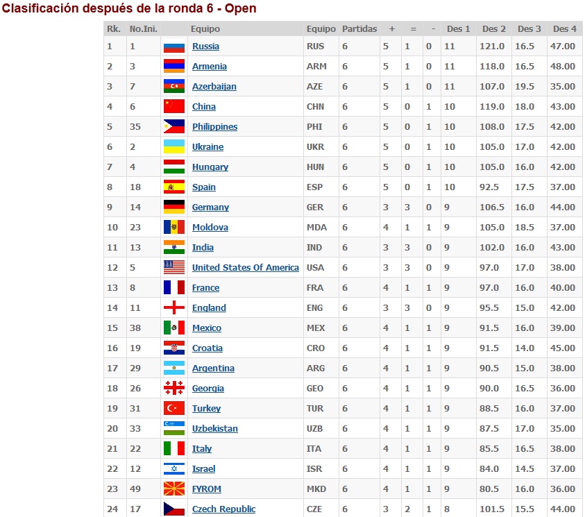 Uzbekistán es el rival para la 7ma ronda y esperemos que Manuel traiga todo su poder si le toca enfrentar al excampeón del FIDE Knockout Championship 2004 Rustam Kasimdzhanov y si en alguna ronda necesitábamos que Juan Carlos despertara es en esta, pues podría estarse enfrentando a Anton Filippov, un GM de 2617 puntos de rating.