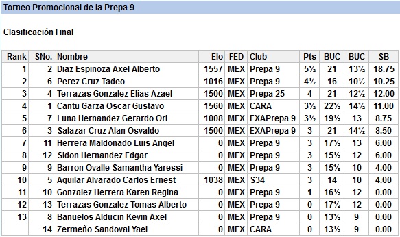 30 de Septiembre Torneo Promocional de la Prepa 9 2017, se disputó un Suizo a 6 rondas a un ritmo de 10 minutos + 5 segundos por jugadaen donde alumnos y exalumnos de la Prepa pudieron convivir junto con estudiantes de secundaria y a la vez competir por las medallas.