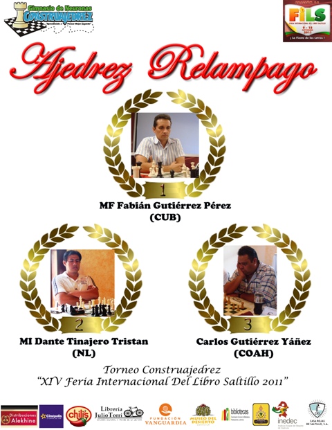 Adjunto crónica del torneo que realizamos en la Feria del Libro de Saltillo, asimismo los medalleros de los ganadores.