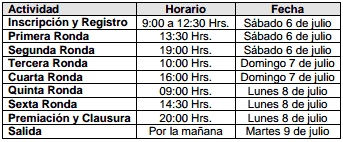 El torneo se desarrollará a 6 rondas, con un tiempo de reflexión de 90 minutos para terminar la partida por jugador más un incremento de 30 segundos por jugada. El tiempo de espera para perder por default será de 30 minutos.