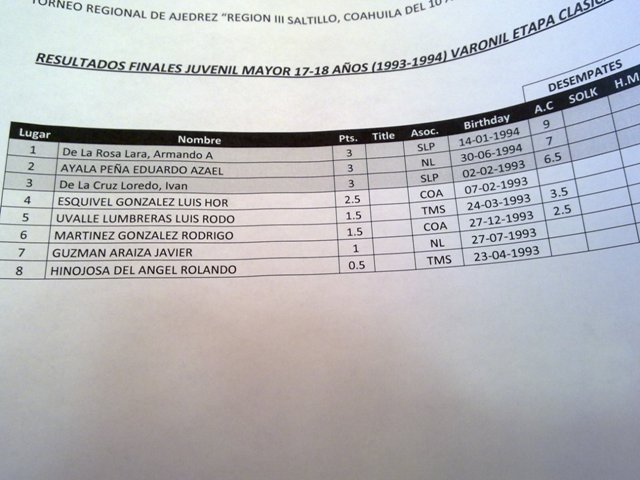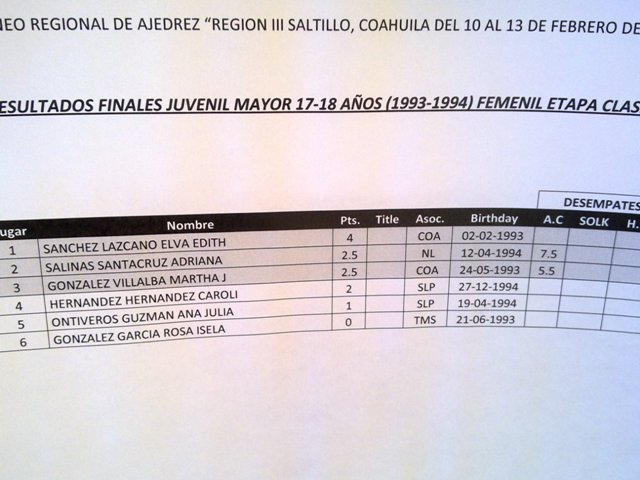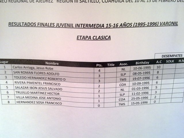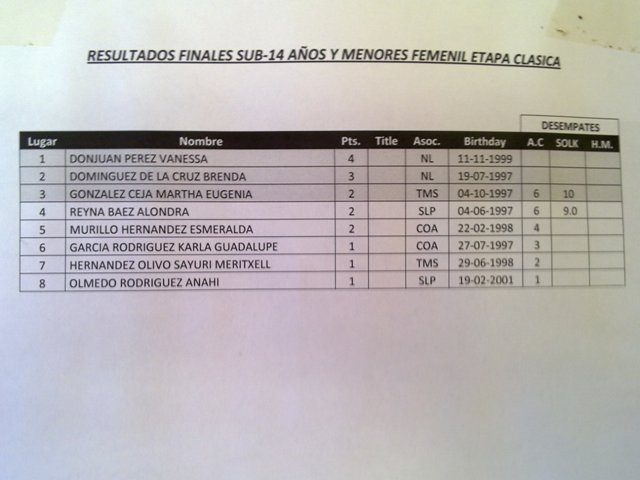 A continuación anexo los resultados completos de la modalidad clásica y unas imágenes de los competidores. Asimismo los medallistas Neoleoneses de la modalidad rápida.