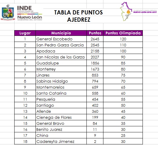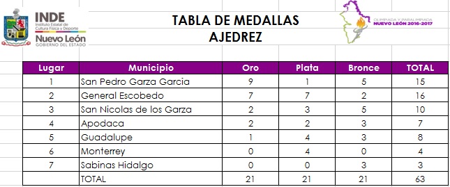 Mención especial a la pequeña Yajaira Ayaleth Rivera Campos del municipio de General Escobedo quién se distinguió con la mejor participación en la Olimpiada Nuevo León 2016-2017 al obtener un score de 23 puntos en 23 partidas y cosechar su 4to oro y de la misma manera al municipio de Sabinas Hidalgo al cosechar su primera presea en la historia de la Olimpiada Nuevo León de Ajedrez en el por equipos de la categoría 2006-2008 y sumar otro par de medallas más en los siguientes días de competencia, felicitaciones al trabajo que desempeña la profesora Verónica Hernández Zapata en ese municipio. Y finalmente un reconocimiento al impecable y puntual trabajo desempeñado por el Árbitro Internacional Eduardo Sauceda Salazar y su equipo de auxiliares quienes estuvieron atentos y siempre a tiempo cuando se les requirió para dirimir cualquier cuestión.