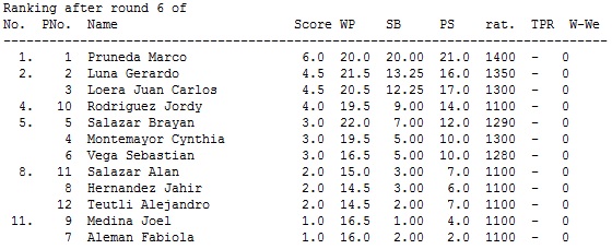 El torneo se jugó en sistema Suizo con 10 minutos por jugador con 5 segundos de incremento por jugada, quedando Marco Prueda, Gera Luna y Juan Carlos Loera en 1ro, 2do y 3er lugar respectivamente.