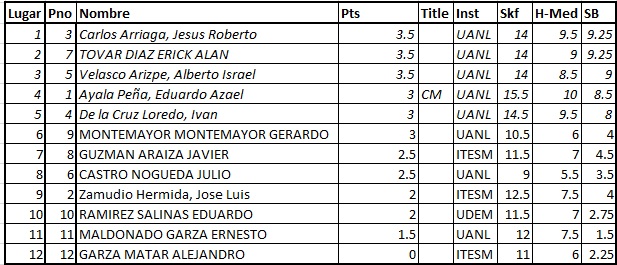 Números finales: la UANL acapara de nuevo el 100% en la categoría Varonil mientras que en la Femenil se sigue contando como desde hace algunos años con la clasificación de Diana Rodríguez Camarillo del ITESM.