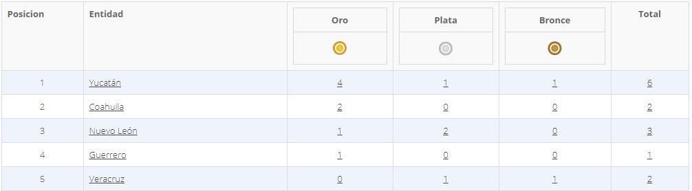 4 Oros y un bronce en Olimpiada Nacional aseguraron el 2do puesto en el medallero y 3er lugar por puntos ¡Un logro nunca antes registrado! Los medallistas fueron Ángel Iván Quiroga Jáquez (1 Oro), Ricardo Nava Moreno (2 Oros) y Rebeca Mellado Reyes (1 Oro y 1 Bronce).