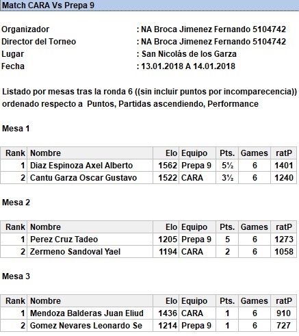 Como preparación al Estatal por Equipos de Secundaria los jóvenes del CARA se enfrentaron a un combinado de la Preparatoria 9 en un por equipos bajo sistema scheveningen, con la intención de enfrentar una dura oposición que los preparara para los más fuertes jugadores del estado. El resultado fué un duelo dominado por la Preparatoria 9 aunque en alguna de las rondas los jóvenes de secundaria se impusieron 2-1.