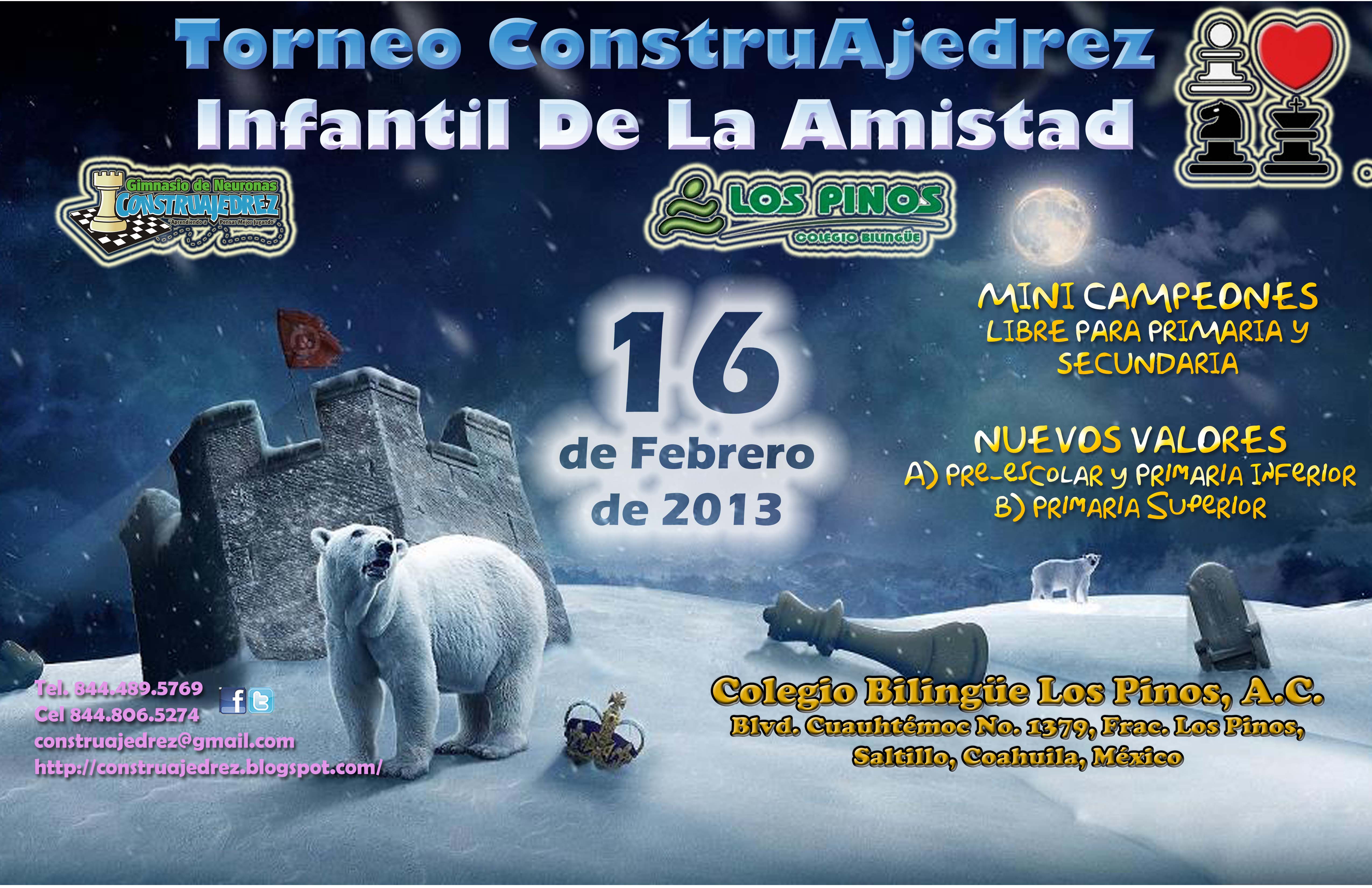 Adjunto convocatoria de Torneo Construajedrez Infantil de la Amistad, dirigido a niños de nivel primaria y secundaria.