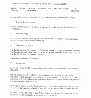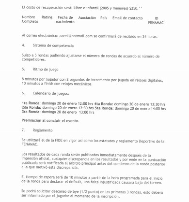 2da Ronda: domingo 20 de enero 12:30 hrs 5ta Ronda: domingo 20 de enero 14:00 hrs