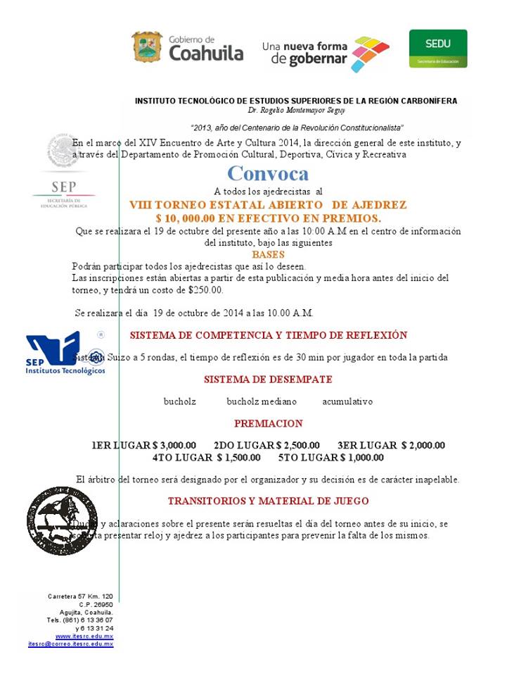 VIII Estatal Abierto de Ajedrez de Coahuila